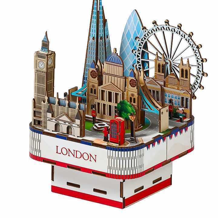กล่องดนตรีคลาสสิก DIY แบบประกอบเอง ของขวัญวันเกิดสำหรับเด็กชายและเด็กหญิง-เดินเล่นในลอนดอน