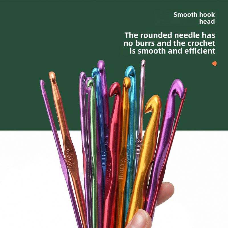 ชุดเข็มถักโครเชต์แบบทำมือชุดอุปกรณ์เย็บโลหะขนาดเล็กหลากสีตะขอถักด้วยอลูมิเนียมงานเย็บเส้นด้ายสำหรับงานฝีมือ