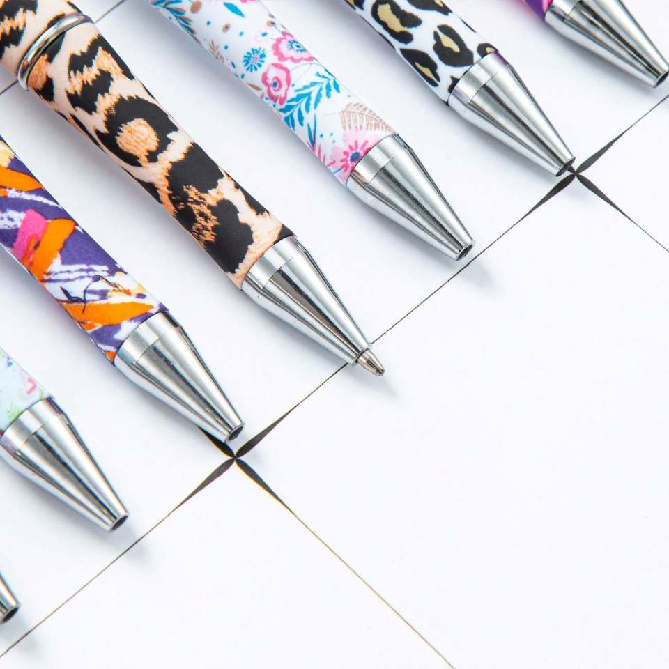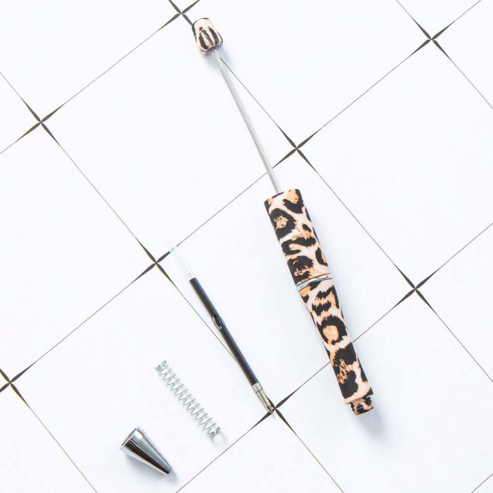 DIY Durable Plastic Bead Ballpoint Pens-Creative Handcrafted Leopard Floral Cow Print Silk Screen Printed Pens Fun Custom Gifts