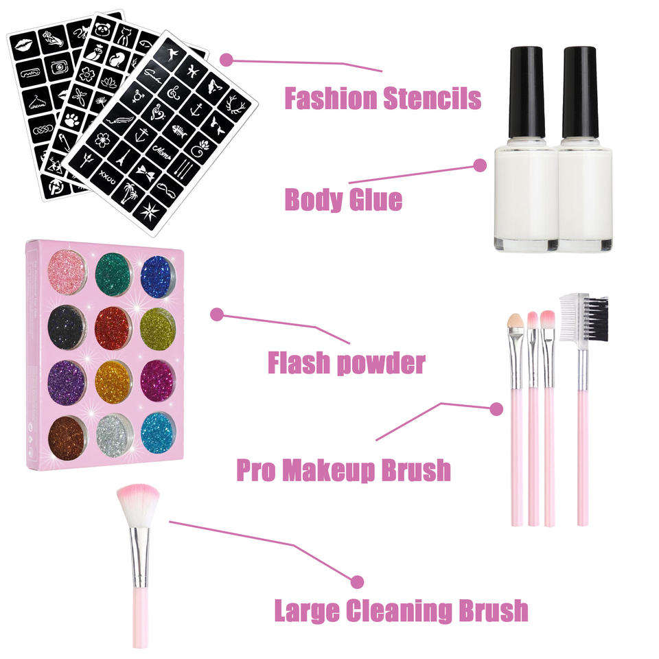 ชุดสติกเกอร์ศิลปะลายฉลุแวววาวสำหรับวันคริสต์มาสฮาโลวีนร่างกายร้อนแรงชุดสักลายแฟลชสำหรับตกแต่งงานปาร์ตี้สำหรับเด็ก