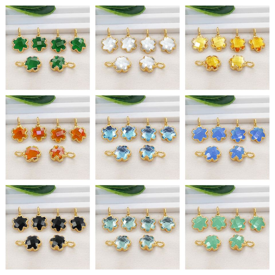 จี้ห้อยทำมือประดับด้วยพลอยลาพิส ลาซูลี ขนาด 10 มม. รูปดอกไม้ ชุบทอง สำหรับทำเครื่องประดับ