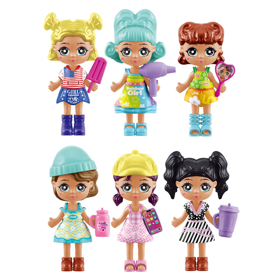 ตุ๊กตาไวนิลสาวน้อย DIY ขนาดเล็ก เปลี่ยนเสื้อผ้าได้ ตุ๊กตาสาวทำจากยาง พร้อมอุปกรณ์เสริม
