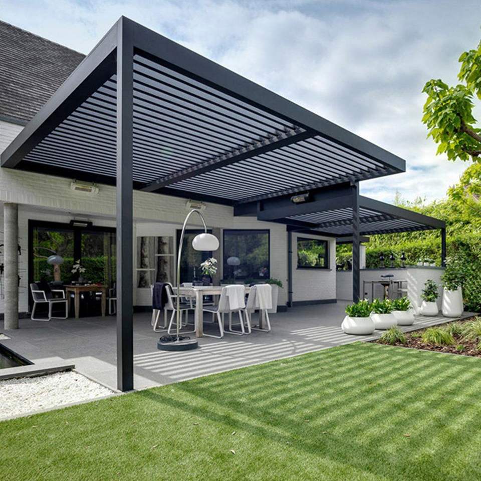 หลังคาเพอร์โกลามอเตอร์ไฟฟ้าปรับระดับได้อัจฉริยะ สำหรับลานบ้านกลางแจ้ง กันน้ำ ทำจากอลูมิเนียม พร้อมชุดรีโมท