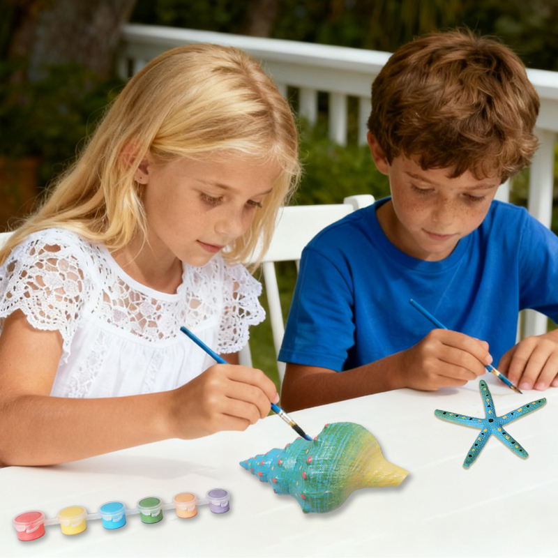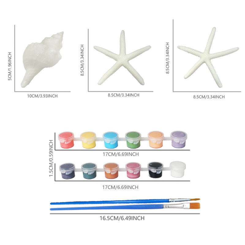 ชุดอุปกรณ์วาดภาพสัตว์ทะเลแบบ DIY | รูปดาวทะเลและเปลือกหอยที่สามารถระบายสีได้ พร้อมสีอะคริลิกและพู่กัน | แบรนด์ WAYEE งานศิลปะพลาสติกขนาด 4.5 นิ้ว