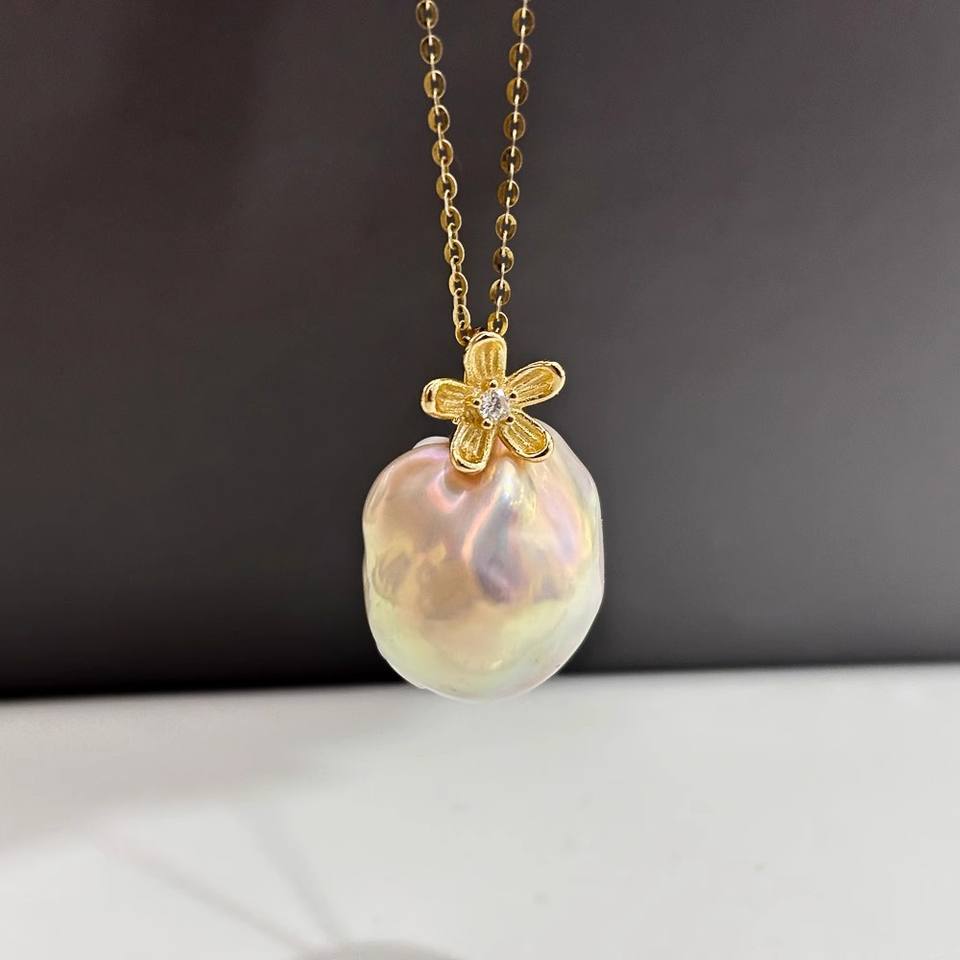 อุปกรณ์ทำเครื่องประดับมุก DIY 31220 จี้เงินแท้ S925 พร้อมลูกปัดกลมขนาด 10-13 มม. ฐานเปล่าสำหรับจี้สีทองและสีเงิน