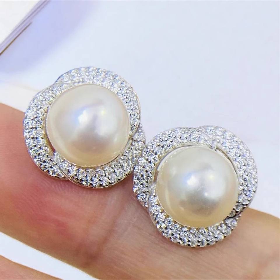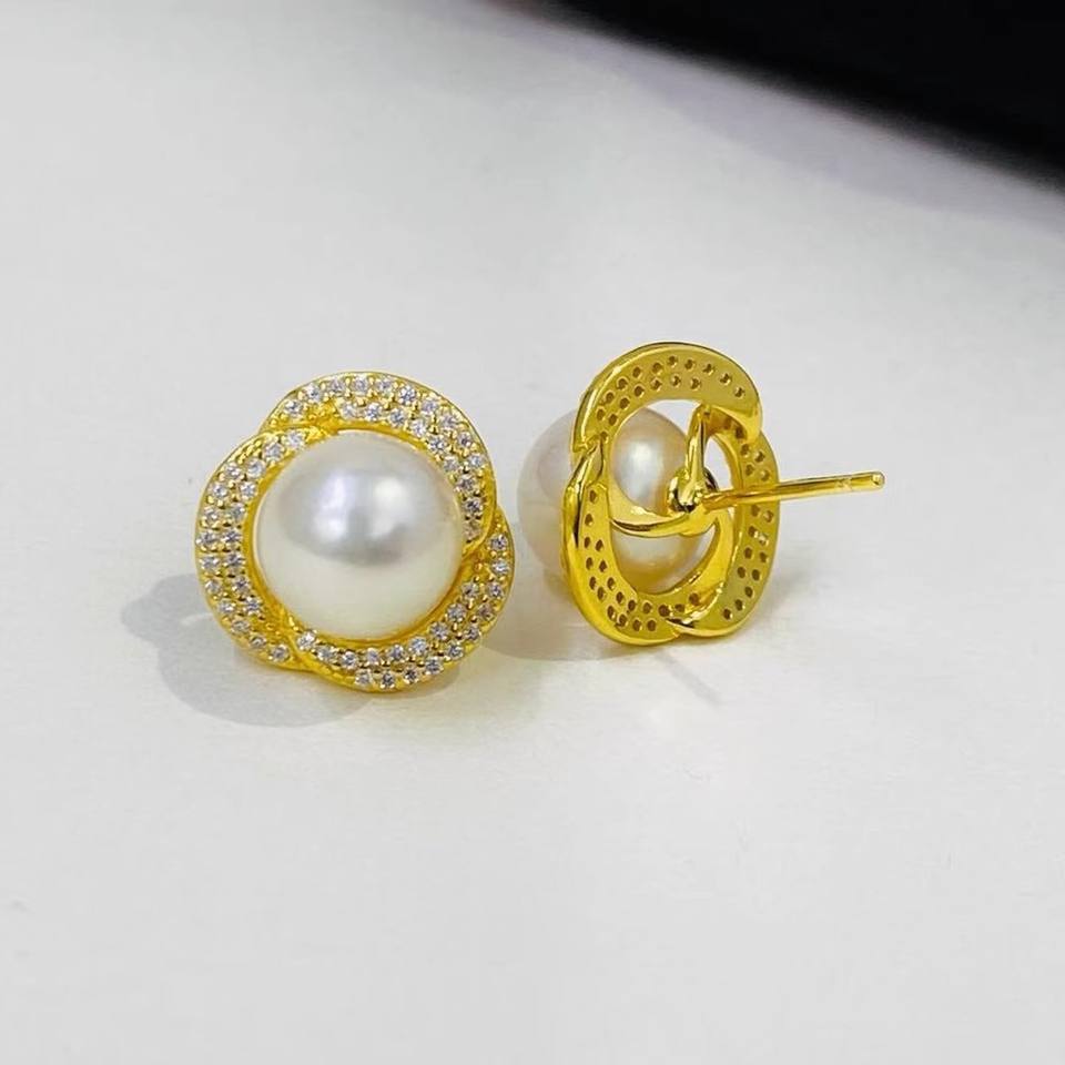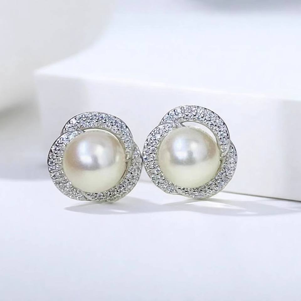 ต่างหูเงินแท้ S925 รุ่น 10841 ยี่ห้อ WENCHI DIY สำหรับใส่ไข่มุก ขนาด 9-10 มม. แบบถาดเปล่า เครื่องประดับเงินแฟชั่นจากจีน