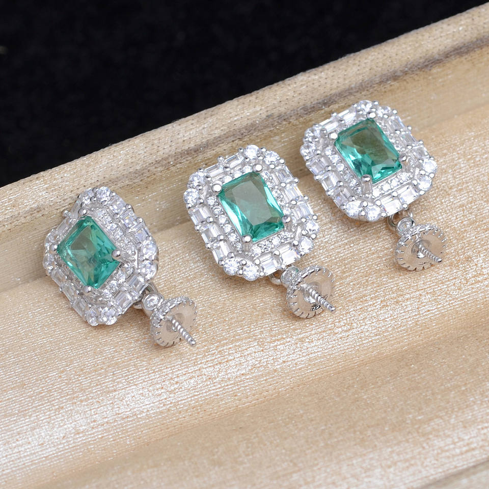 ต่างหูจี้ทรงสี่เหลี่ยมไข่มุกบาร็อคเงินแท้ S925 ขนาด 12-16 มม. ฐานเปล่าพร้อมตัวล็อคแบบกด อะไหล่และอุปกรณ์ทำเครื่องประดับ 6060