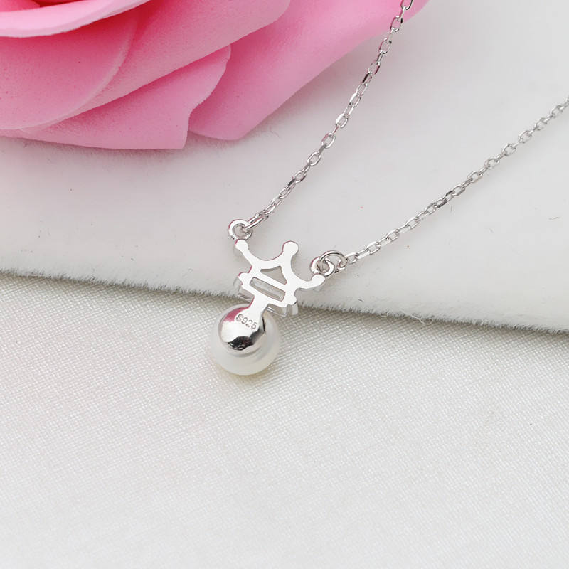 ชุดสร้อยคอจี้มงกุฎเงินแท้ S925 ดีไซน์เรียบง่ายทันสมัย พร้อมสร้อยไข่มุกสำหรับผู้หญิง ขนาด 7-8 นิ้ว รุ่น 415