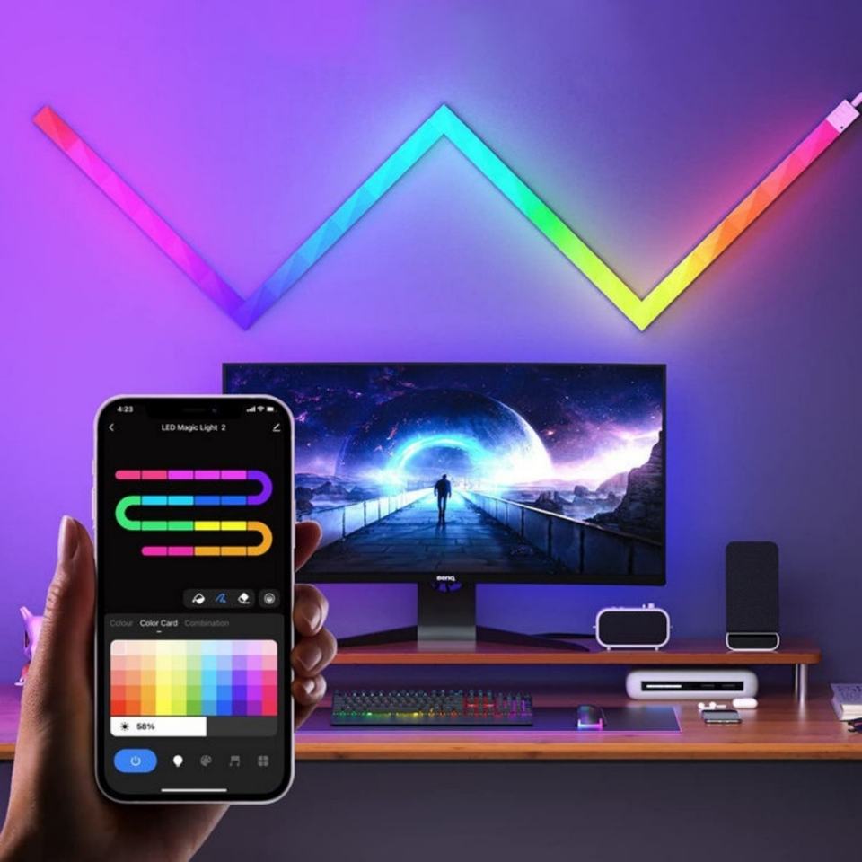 ไฟติดผนัง DIY Smart Glide แบบ RGB สีสันสดใส สามารถต่อประกอบได้ เหมาะสำหรับโต๊ะอีสปอร์ต สร้างบรรยากาศ