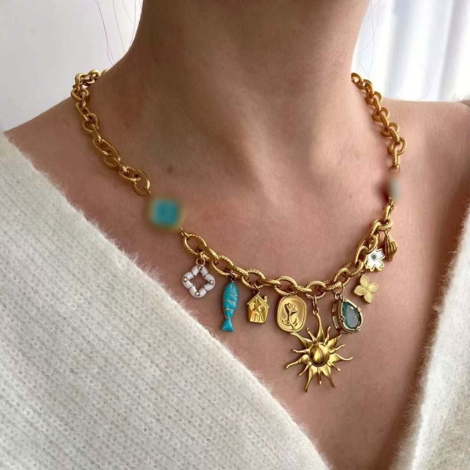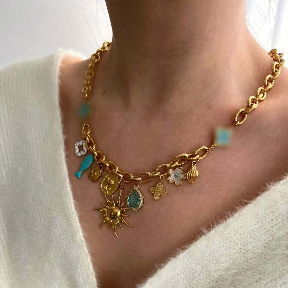 สร้อยคอจี้รูปทรงเรขาคณิตสแตนเลส DIY พร้อมจี้เปลือกหอยรูปพระอาทิตย์ สไตล์คลาสสิกแฟชั่น ชุบทอง สำหรับผู้หญิง ฉลองวันครบรอบ
