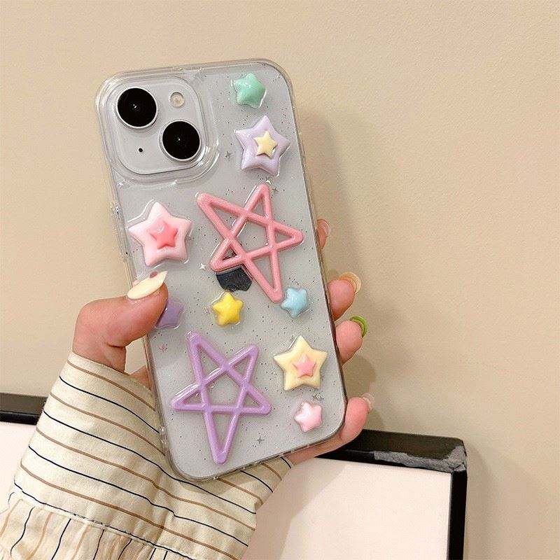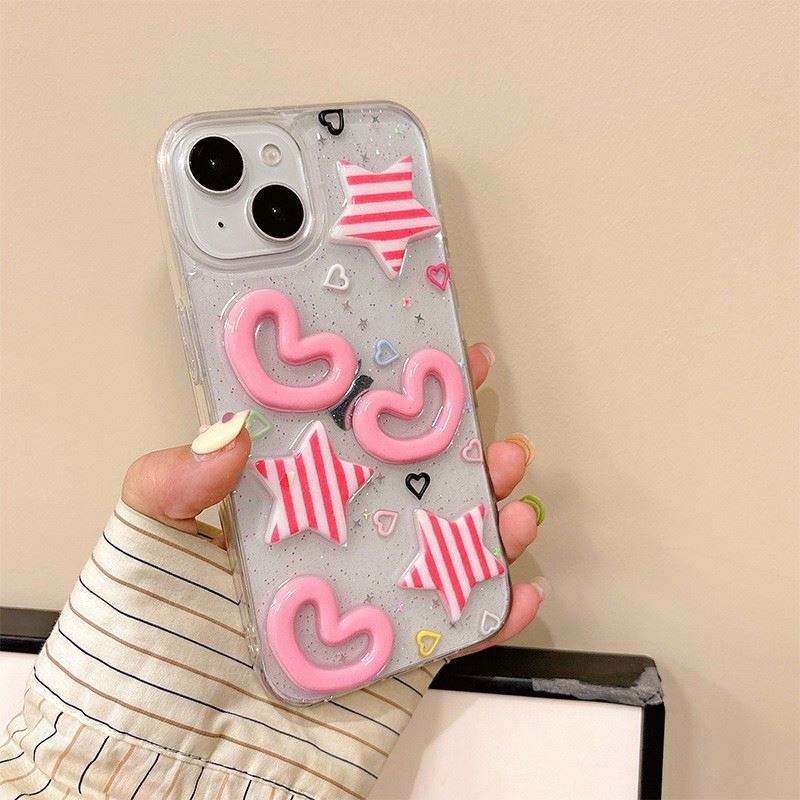 เคสโทรศัพท์ DIY ลายดาวหัวใจ สำหรับ iPhone 15 14 Plus 13 12 Pro Max 11 16 17 เคสใสสไตล์สาวเกาหลี แบบนิ่ม ป้องกันด้านหลัง