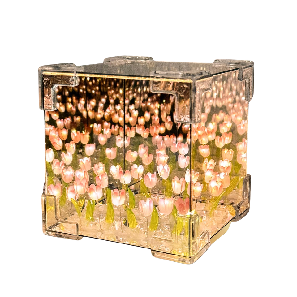 DIY Tulip Night Light Tulip Mirror Cube Lamp Acrylic Night Lamp 16 20 21 Flowers Assembling Table Lamp Decorative Lighting