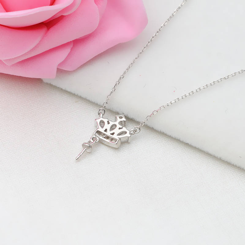 สร้อยคอเงินแท้ S925 รูปมงกุฎสำหรับผู้หญิง พร้อมจี้แฟชั่นและอุปกรณ์กึ่งสำเร็จรูปสำหรับทำเครื่องประดับ