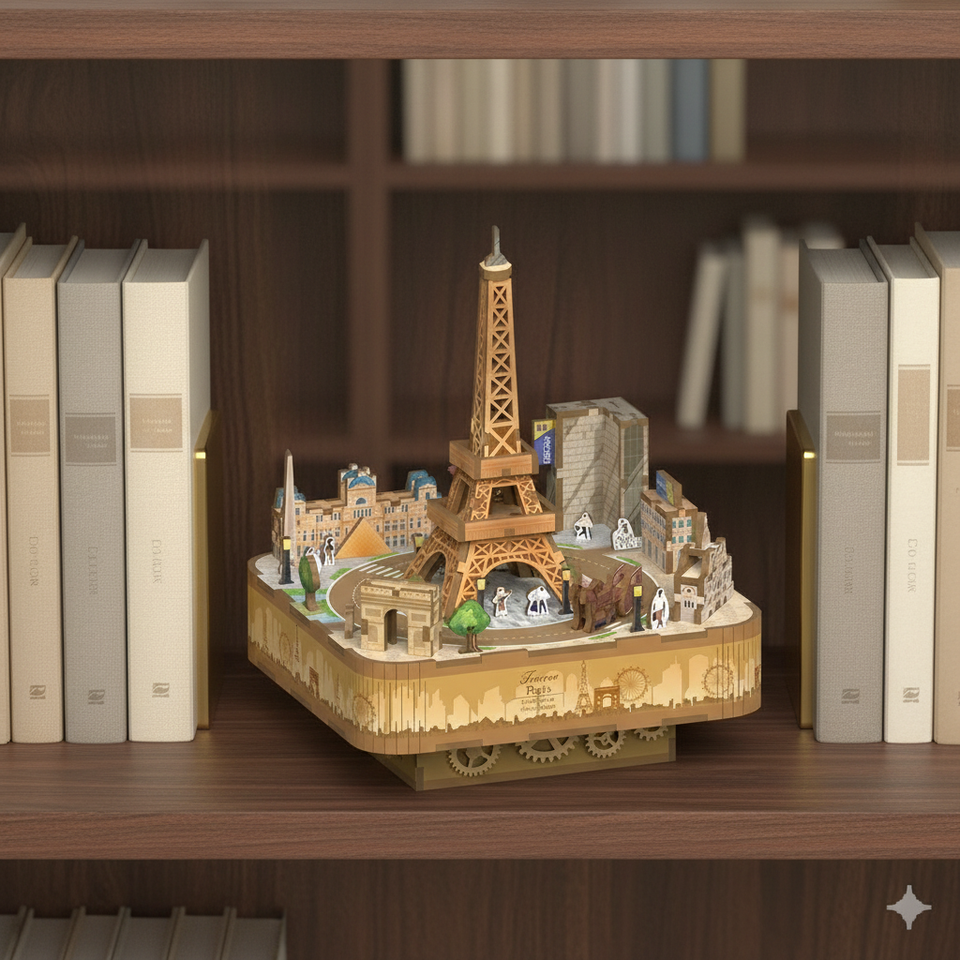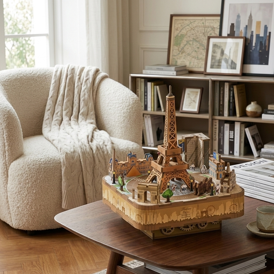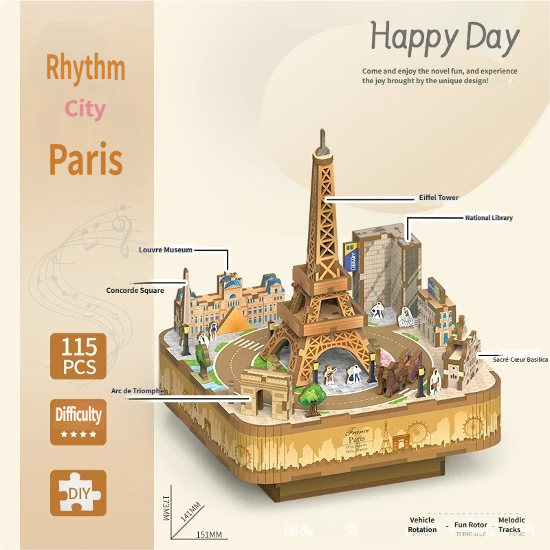 กล่องดนตรีหอไอเฟลไม้ DIY แบบ 3 มิติ ตัวต่อรูปปารีส ดีไซน์สวยงาม ฝึกทักษะประสาทสัมผัส ของสะสม ตกแต่งบ้าน ของขวัญสุดโรแมนติก ของเล่น