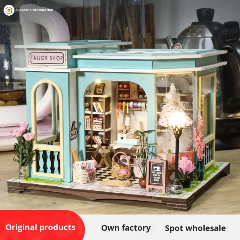 ชุดบ้านตุ๊กตาไม้ DIY พร้อมเฟอร์นิเจอร์ ไฟ LED ของขวัญคริสต์มาสสำหรับเด็กอายุ 0-24 เดือน