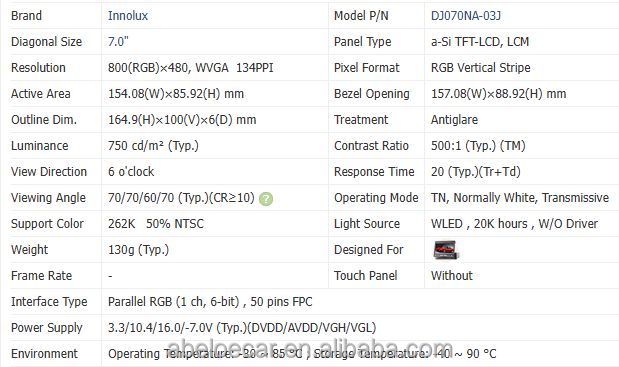 จอแสดงผลรถยนต์ Innolux 50 พิน FPC รุ่น DJ070NA-03J ขนาด 7 นิ้ว ใหม่ 100% จอแสดงผล WLED TFT LCD ความละเอียด 800x480 มีสินค้าในสต็อก จัดส่งรวดเร็ว