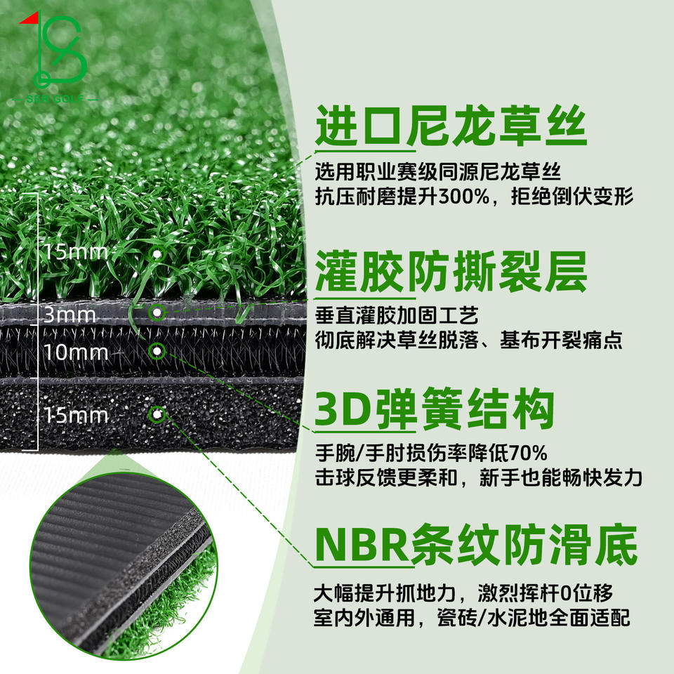 แผ่นรองตีกอล์ฟ 3 มิติ DJD0730 ขนาด 1.5x1.5 ม. ทำจากไนลอน สำหรับฝึกซ้อมในสนามไดร์ฟวิ่ง