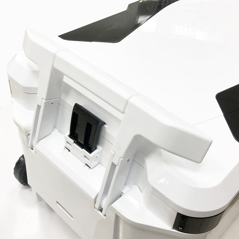 DK กล่องเก็บความเย็นพลาสติก PU สีขาว85L มีล้อในตัวรูระบายน้ำกันลื่นมือจับเสริมแรงสำหรับล่าสัตว์กลางแจ้งใช้เดินทางพร้อม