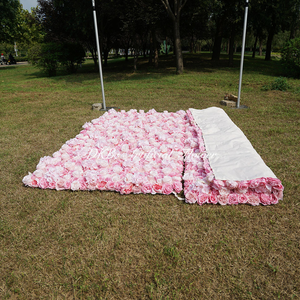 ฉากหลังดอกไม้ประดิษฐ์ DKB 3 มิติ 5 มิติ หรูหรา สำหรับตกแต่งงานรับปริญญา งานแต่งงาน รุ่น HQ007 ผ้าพื้นหลังสีชมพู ลายดอกกุหลาบ ผ้าไหมม้วน