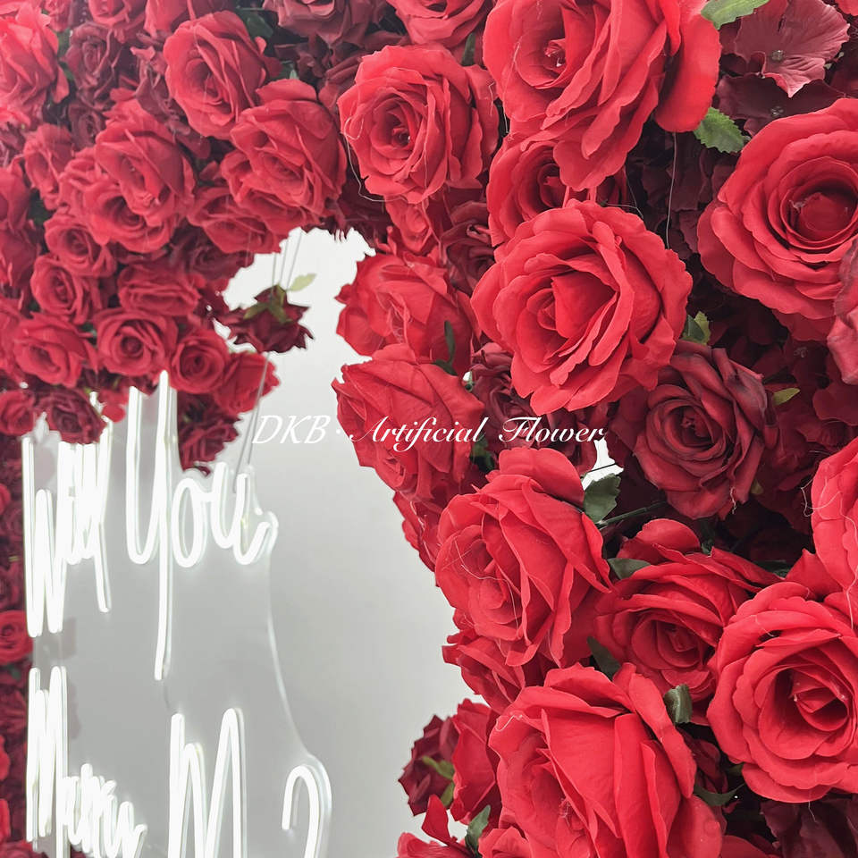 DKB ดอกไม้ประดิษฐ์ดอกกุหลาบผ้าไหมสีแดงรูปหัวใจซุ้มแต่งงานดอกไม้ประดิษฐ์ทำจากผ้าไหมสีแดง