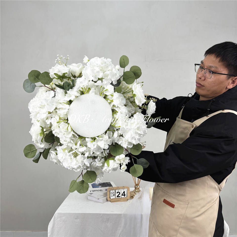 ดอกกุหลาบประดิษฐ์ขนาดใหญ่ DKB แบบเหมือนจริง จัดเป็นลูกบอลดอกไม้สำหรับตกแต่งงานแต่งงาน ทำด้วยมือสำหรับตกแต่งงานแต่งงาน