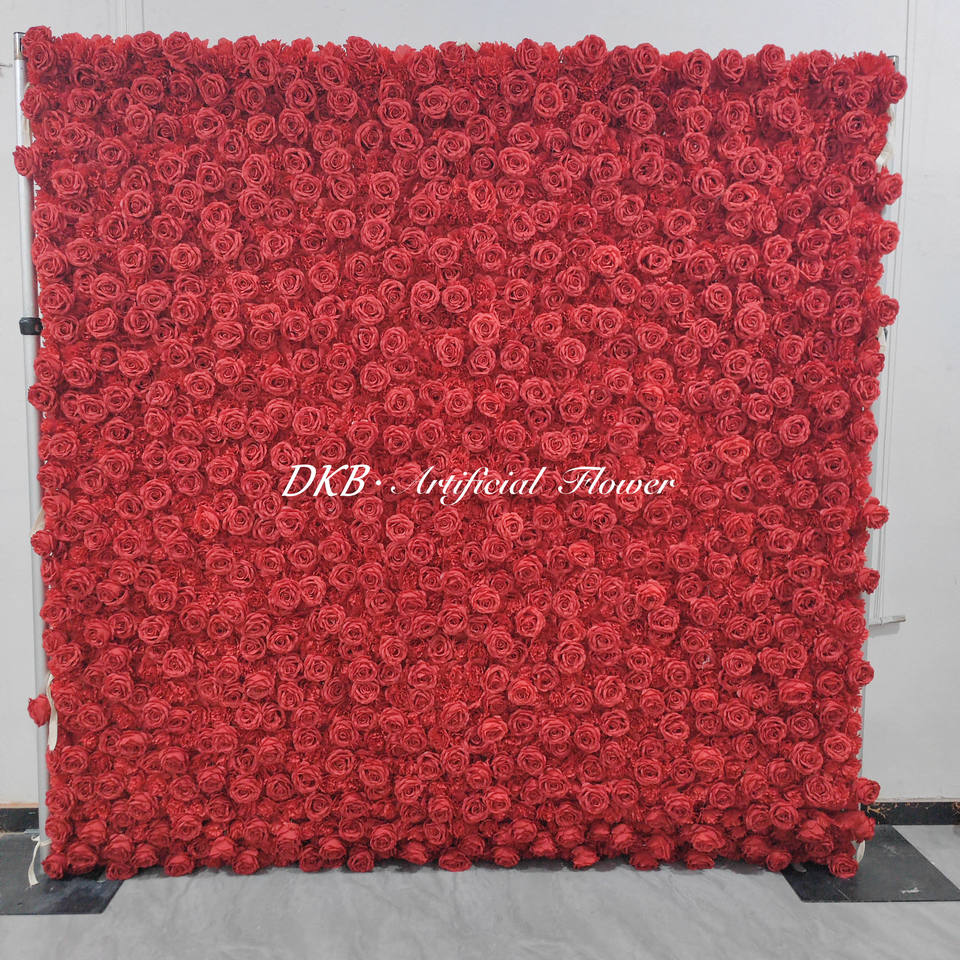 ฉากหลังดอกไม้ประดิษฐ์สีแดงแบบกำหนดเองจากโรงงาน DKB ฉากหลังดอกไม้ 3 มิติ ขนาด 8 ฟุต x 8 ฟุต