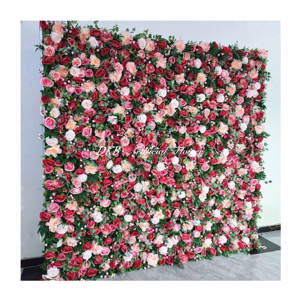 DKB ดอกไม้ประดิษฐ์ตกแต่งด้วยผ้าไหมโดยตรงจากโรงงานฉากหลังสีชมพูดอกกุหลาบ8FT x 8FT สำหรับตกแต่งงานแต่งงาน