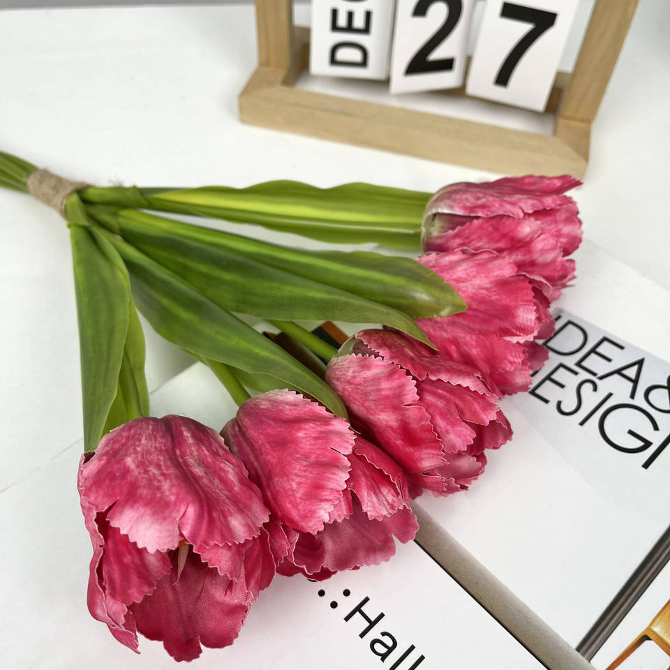 DKB ดอกไม้ประดิษฐ์ดอกทิวลิปสีชมพูเทียมดอกไม้สัมผัสแท้