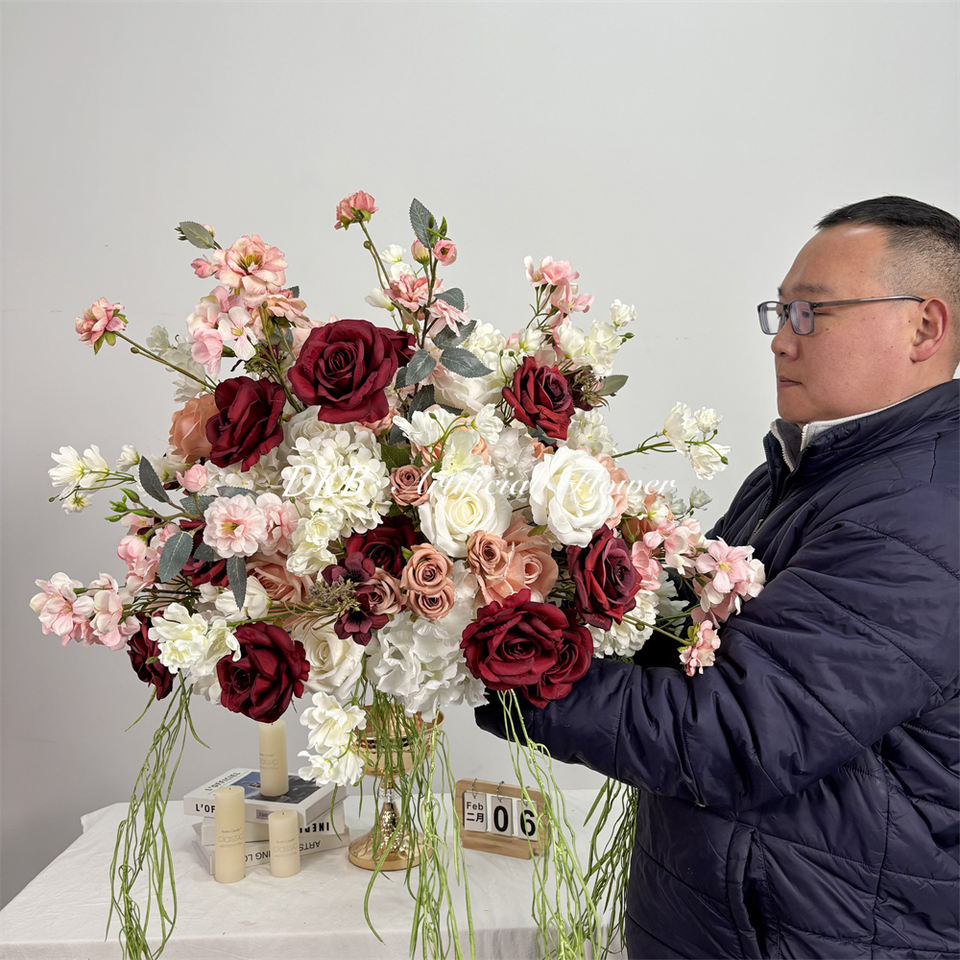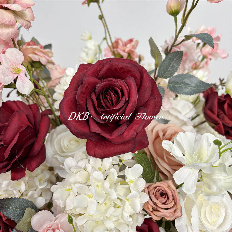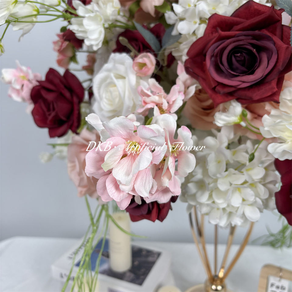 โรงงาน DKB ขายส่งดอกกุหลาบผ้าไหมทำมือเหมือนจริง ลูกบอลดอกไม้สำหรับตกแต่งโต๊ะงานแต่งงาน ของตกแต่งทันสมัย