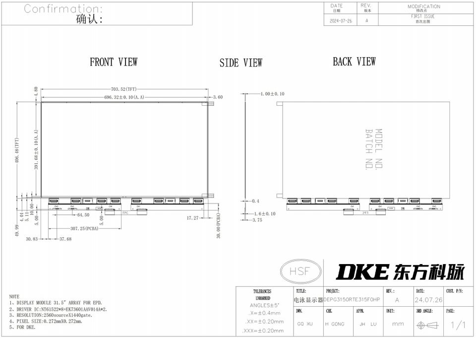 หน้าจอ E-ink ขนาด 31.5 นิ้ว รุ่น DKE เครื่องอ่านอีเปเปอร์แบบครบชุด จอแสดงผลสี E-ink EPD