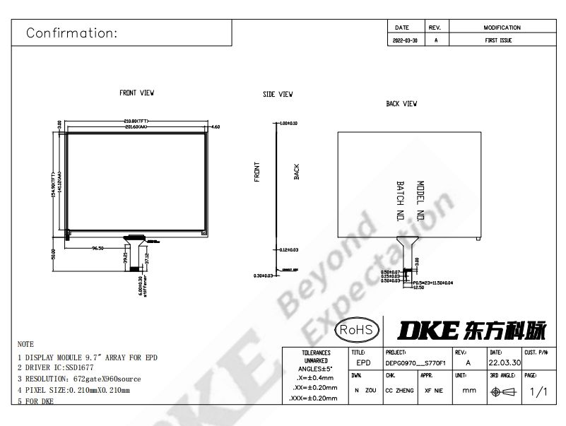 DKE 9.7นิ้วความละเอียด960*672โมดูล eink โมดูลพิกเซล E-Paper OLED epap จอสีทัชสกรีน