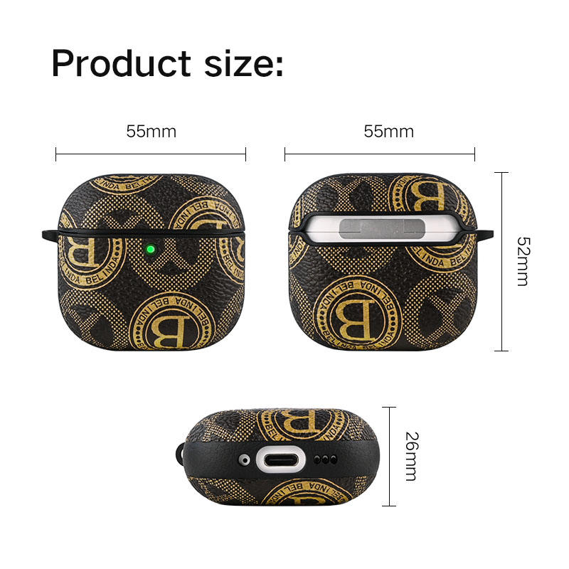 DL เคสหนังโลโก้ที่กำหนดเองสำหรับ Airpods3 Gen2มืออาชีพพร้อมเชือกและพวงกุญแจเคสหูฟังไร้สายกันกระแทกแบบมีสไตล์