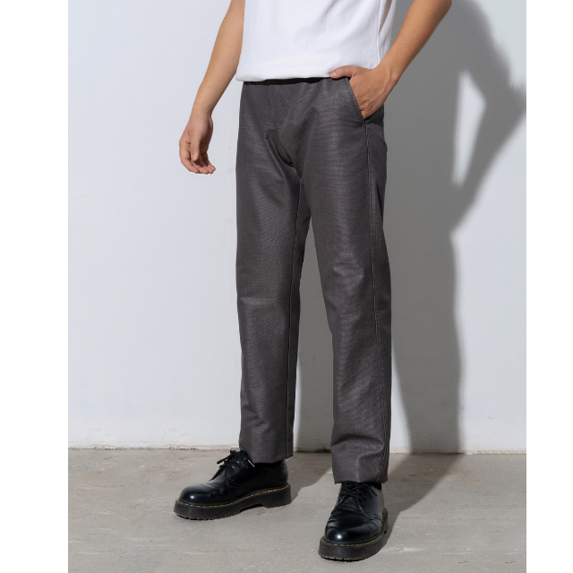 กางเกงขายาวผู้ชายสีดำเทา โพลีเอสเตอร์ แบบรัดรูป พิมพ์ลาย ราคาขายส่งตามสั่ง ผลิตในเวียดนาม ยี่ห้อ Phong Phu รุ่น DTNCC