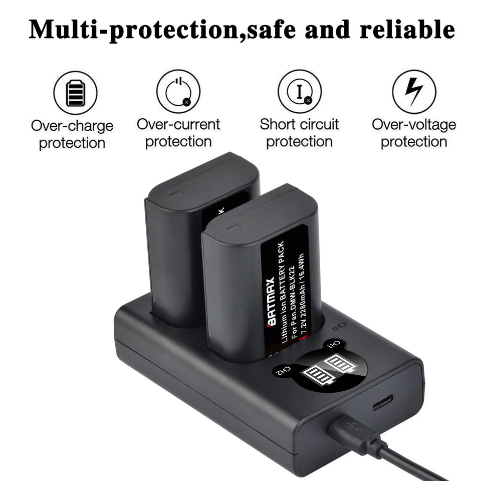 DMW-BLK22 DMWBLK22 BLK22 LED USB 2พอร์ตสำหรับชาร์จ PANA Sonic LUMIX S5 S5 II GH5 II กล้อง GH6