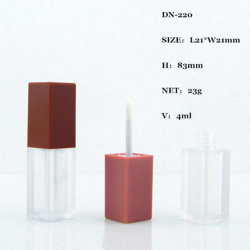 หลอดลิปกลอสเปล่าทรงเหลี่ยมพลาสติก 5 มล. ปรับแต่งโลโก้ได้ พิมพ์ได้ วัสดุบรรจุภัณฑ์เครื่องสำอาง
