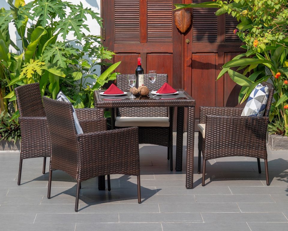 ชุดโต๊ะเก้าอี้หวายทันสมัย5ชิ้นสำหรับ DN00014เฟอร์นิเจอร์รับประทานอาหารกลางแจ้งสำหรับห้องนั่งเล่นบ้านไร่