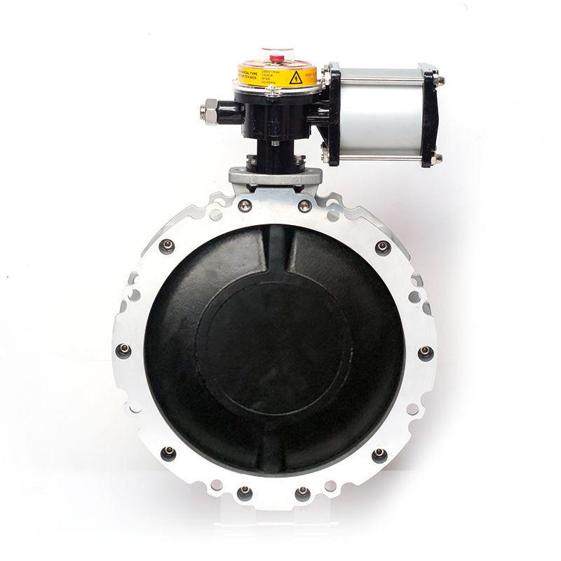 วาล์วผีเสื้อป้องกันฝุ่นแบบนิวเมติก DN300 หน้าแปลนเดี่ยว/คู่ สำหรับบดละเอียด แผ่นเหล็กหล่อ สำหรับโรงงานผสมปูนซีเมนต์