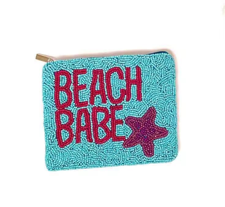 DOG MOM Handcrafted Silk Beaded Embroidery Flower Style High Quality Gameday Pouch Volleyball Print Rectangular Coin Purse