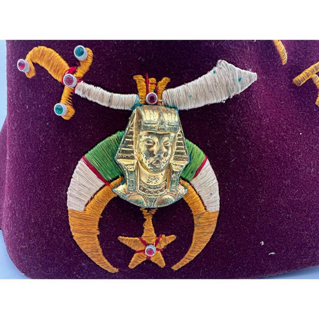 Fez Hat Pure White Silk With Thread Hand Embroidery and Rhinestones