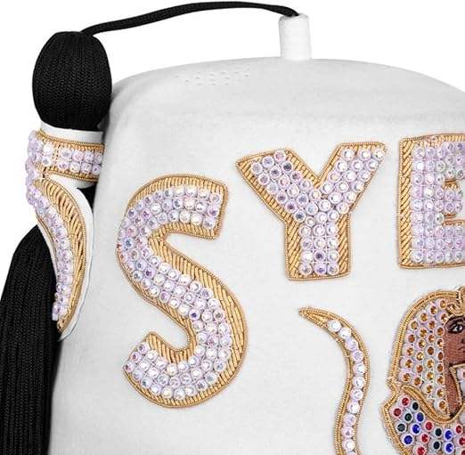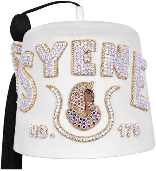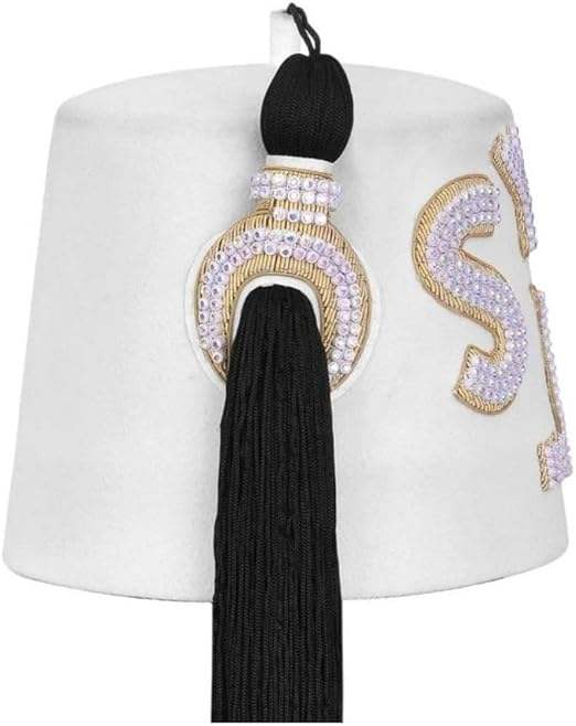 หมวกเฟซ DOI PHA สีขาวบริสุทธิ์ ปักลายทอง ประดับด้วยคริสตัล 3 แถว หมวกเฟซสำหรับพิธีกรรมเมสัน