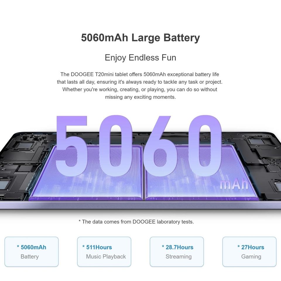 DOOGEE T20 Mini ตัวเครื่องขนาดเล็ก หน้าจอ FHD 8.4 นิ้ว สมาร์ทโฟน 20GB+256GB ความบาง 7.4 มม. กล้องหลัง 50MP รองรับ LTE NFC แบตเตอรี่มากกว่า 8000mAh