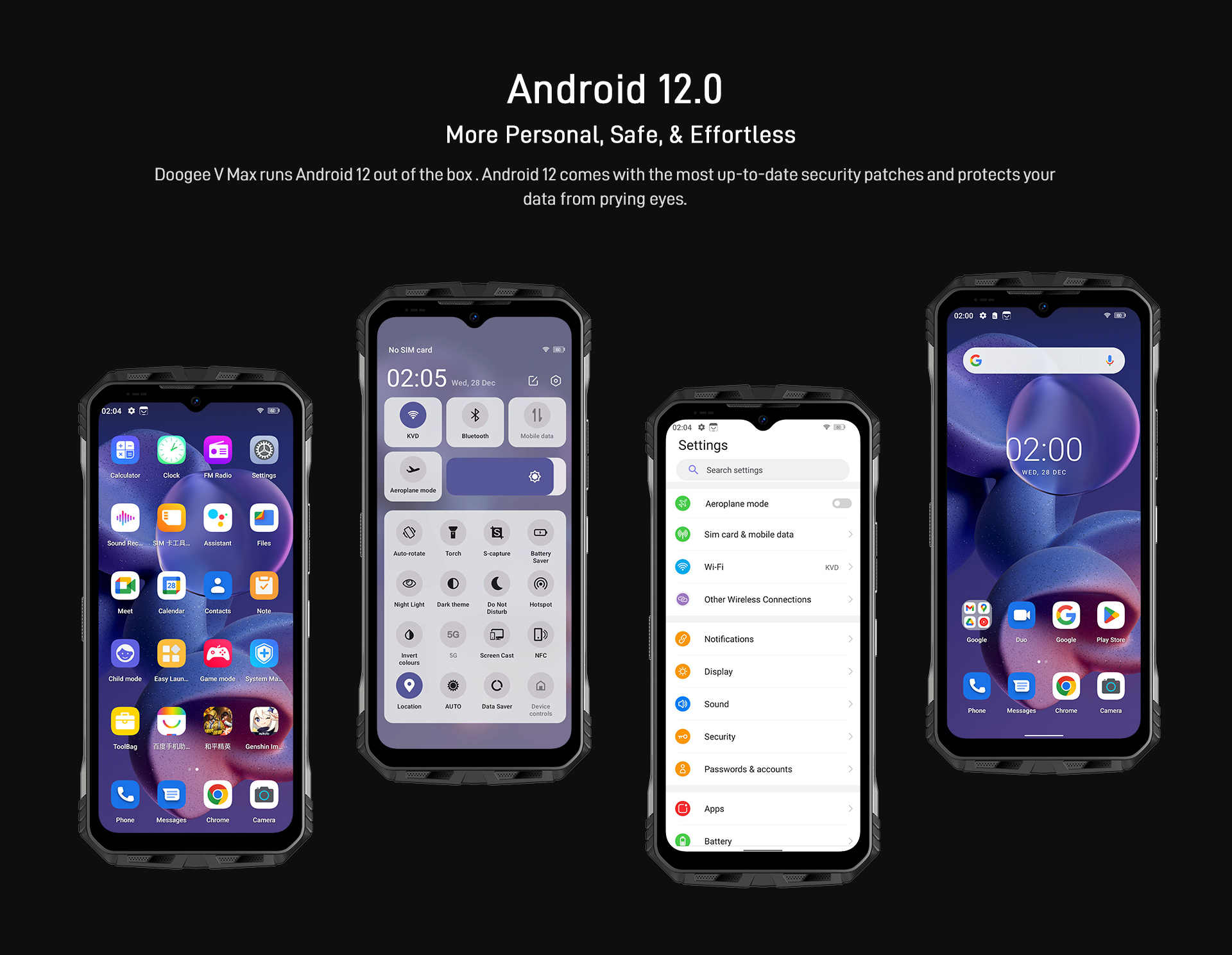 โทรศัพท์มือถือ DOOGEE V Max 5G รุ่นทนทาน หน้าจอ 6.58 นิ้ว 120Hz ชิปเซ็ต Dimensity 1080 กล้องหลัก AI 108MP Octa Core แรม 12GB ความจุ 256GB แบตเตอรี่ 22000mAh