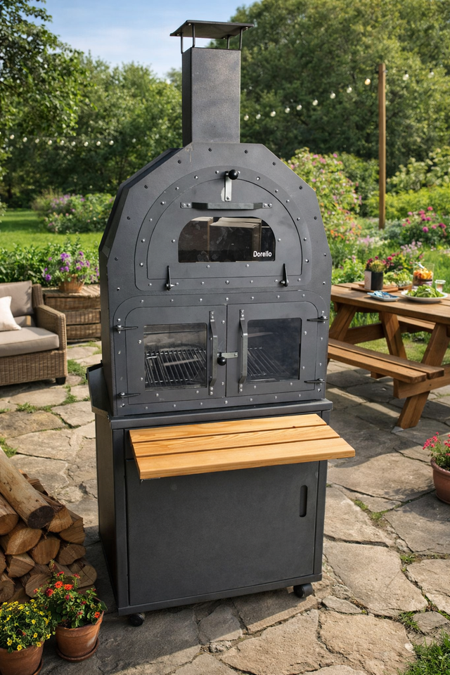 เตาอบสวนและเตาบาร์บีคิว DORELLO รุ่นโมเดิร์น ทำจากโลหะและไม้ พร้อมรีโมทคอนโทรล และดีไซน์รักษ์โลก