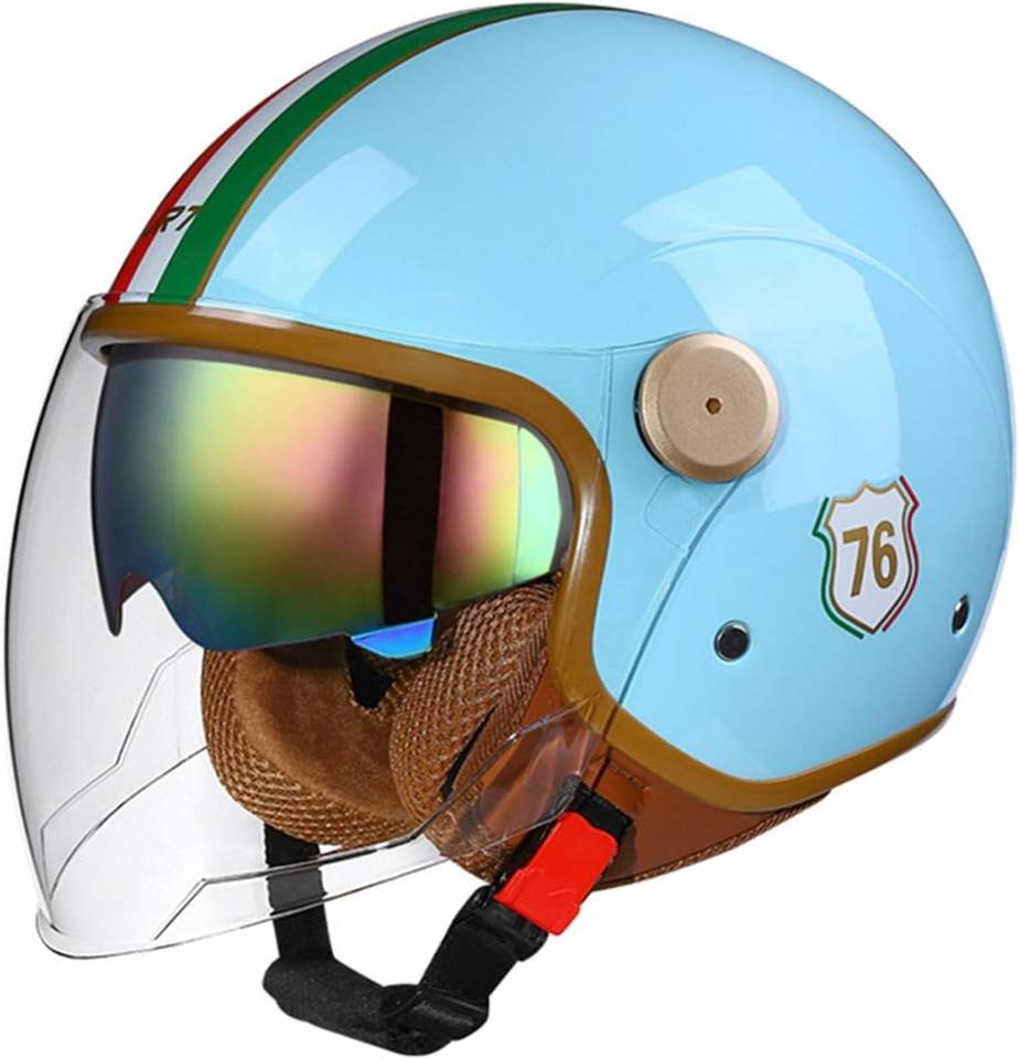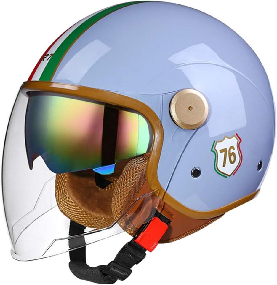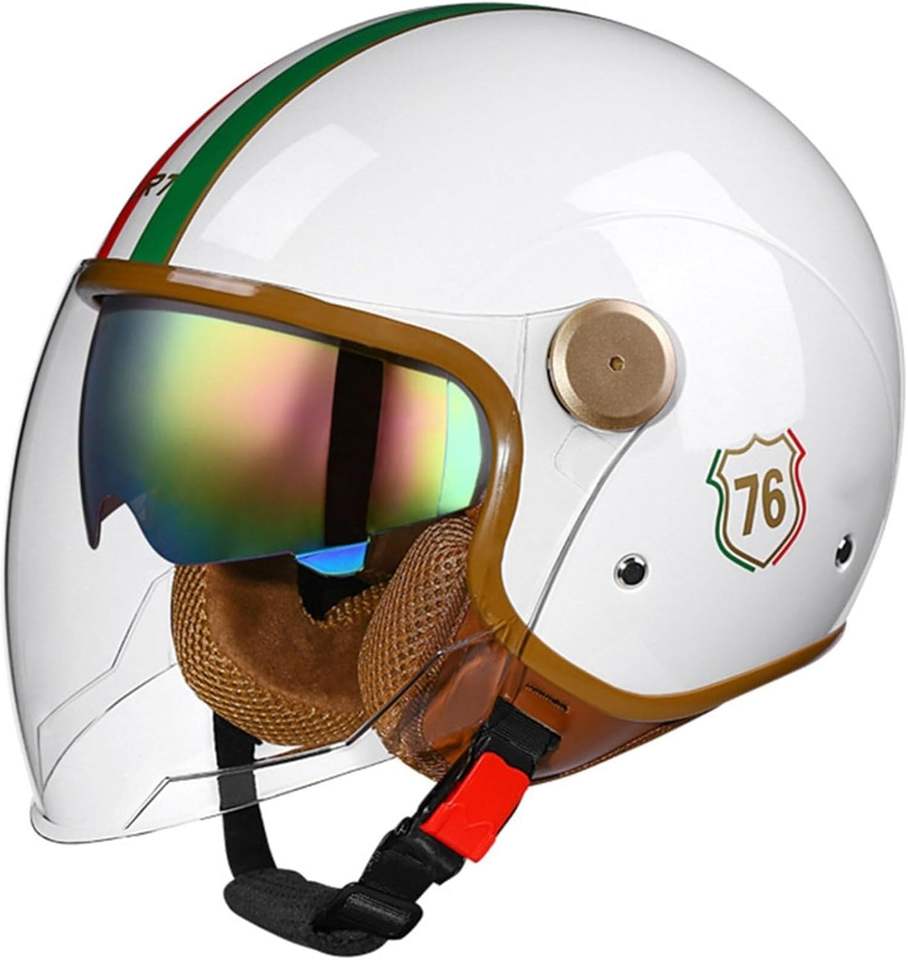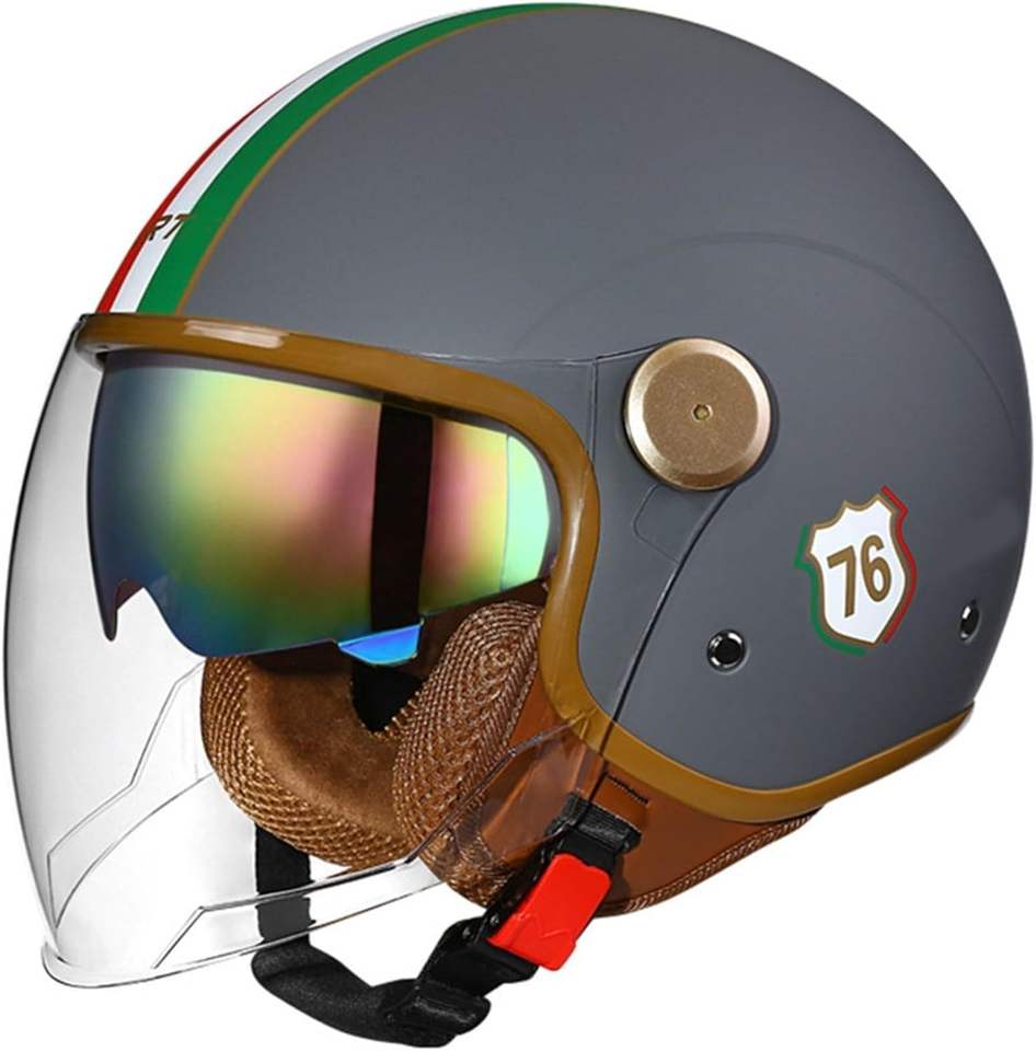 หมวกกันน็อคเวสป้าแบบวินเทจ 3/4 ได้รับการรับรองจาก DOT สำหรับผู้ใหญ่ แบบเปิดหน้าครึ่งใบ สไตล์เรโทร สำหรับสกู๊ตเตอร์ ATV ครุยเซอร์ พร้อมกระจกสองชั้น แบบเจ็ท สตรีท ช็อปเปอร์