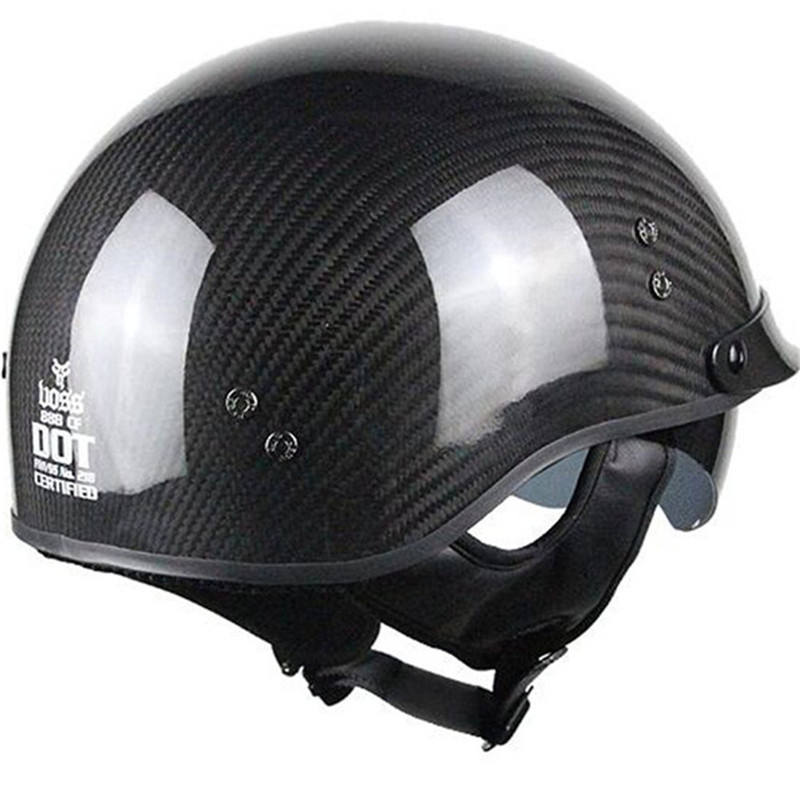 หมวกกันน็อคครึ่งใบแบบเรโทร คาร์บอนไฟเบอร์ ได้รับการรับรองมาตรฐาน DOT สำหรับปั่นจักรยานและขี่มอเตอร์ไซค์กลางแจ้ง
