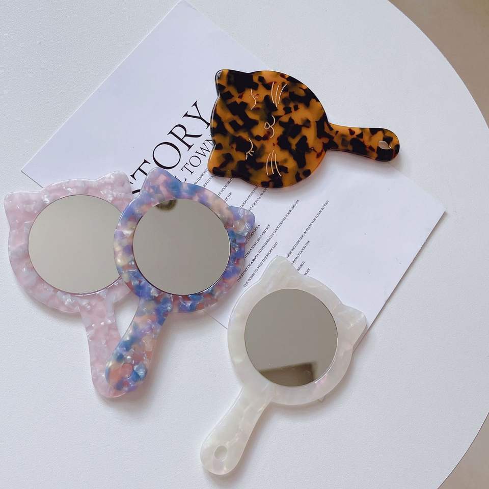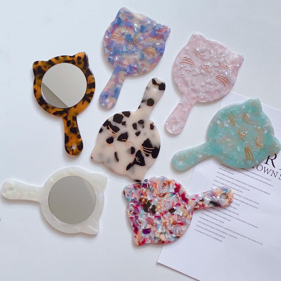 Dowell กระจกแต่งหน้าด้านเดียวแบบย้อนยุคกระจกแต่งหน้าอะซิเตทรูปหัวใจสำหรับการเดินทาง