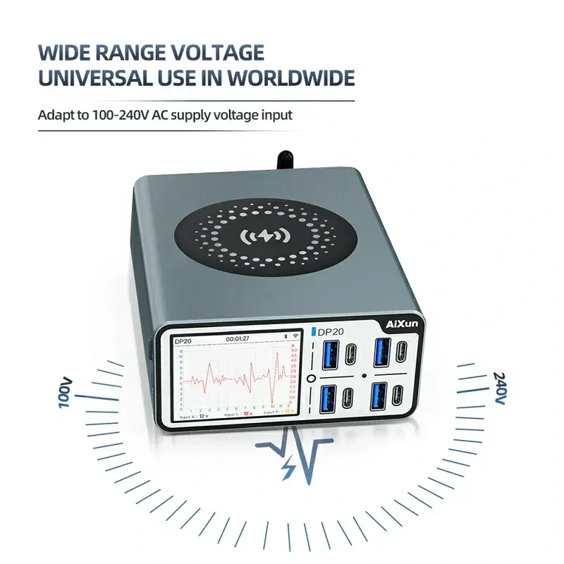 DP20 aixun แหล่งจ่ายไฟสลับโหมด2.4นิ้วจอแสดงผล IPS HD แบบมีสายอุปกรณ์ชาร์จเร็วอัจฉริยะตั้งโต๊ะแบบไร้สาย