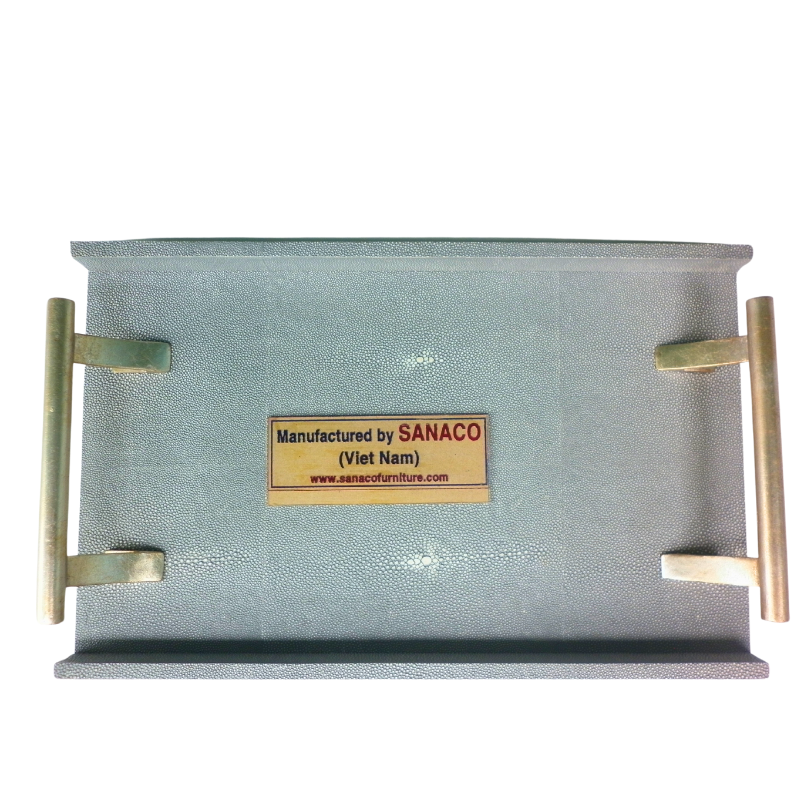 ถาดตกแต่งลายหนังแกะเทียม รุ่น DPC 052 พร้อมหูจับสแตนเลสสีทองขัดเงา สำหรับโต๊ะกาแฟ/โต๊ะคอนโซล ผลิตที่บินดูง