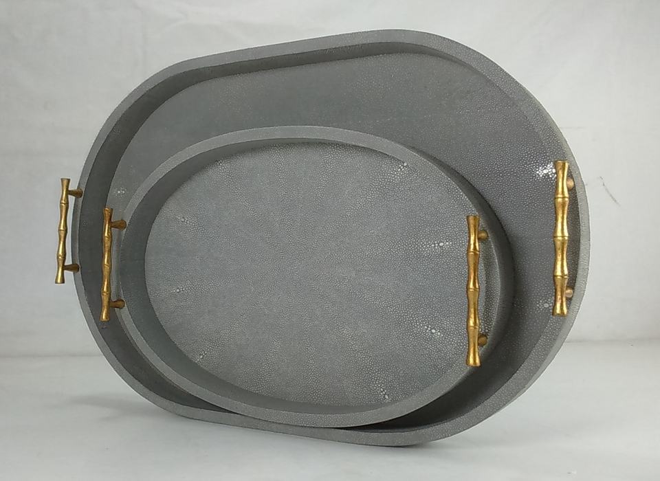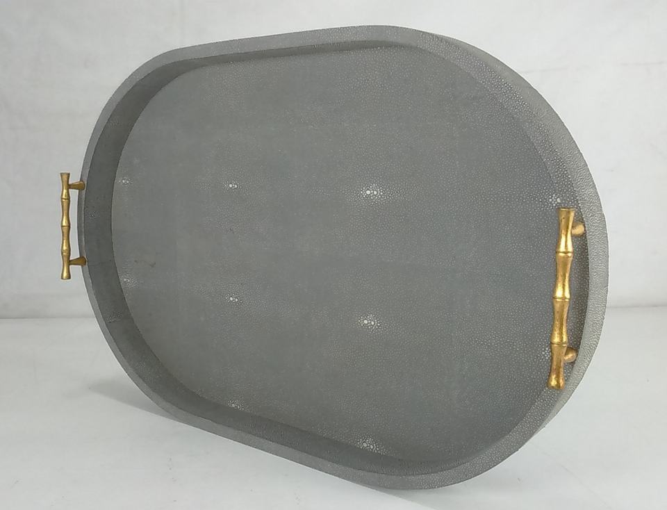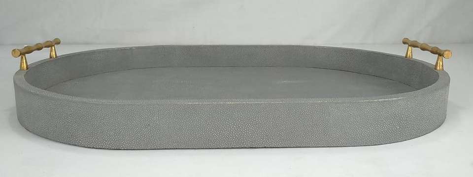 ถาดเก็บของทรงรีลายหนังปลาฉลามเทียม รุ่น DPC 095 ขนาด 0.58x0.38x0.065 นิ้ว พร้อมหูจับ สำหรับเสิร์ฟชา/อาหาร