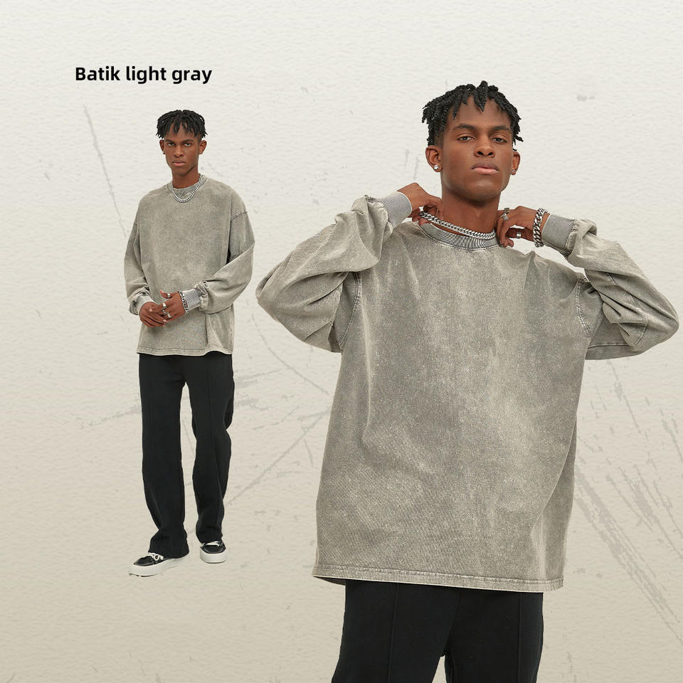 DQ250L Custom Logo Vintage Boxy Oversized College Acid Wash Autumn Breathable Sweatshirt 100% 250GSM Black Cotton Terry
